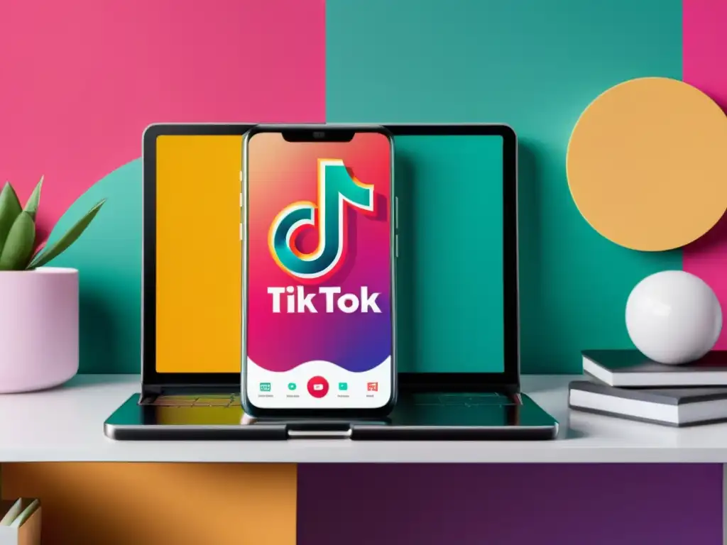 Imagen profesional en alta resolución de un smartphone con la app de TikTok abierta, mostrando un perfil bien optimizado y contenido atractivo